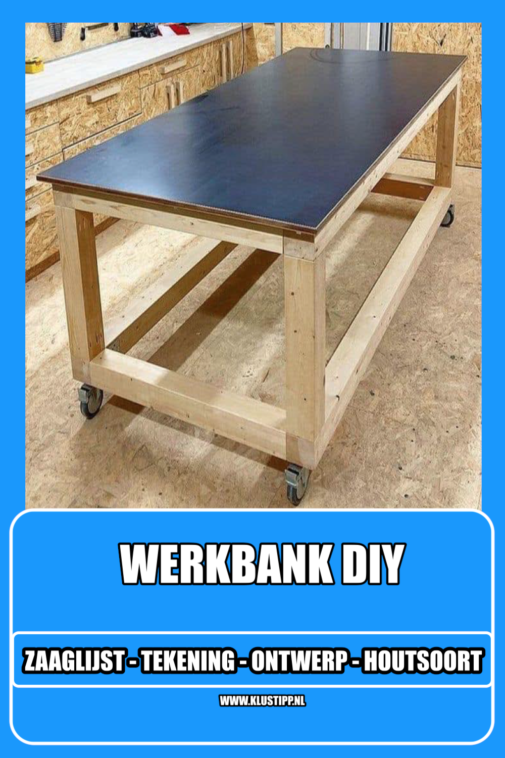 Hoeveel ruimte heb je? Komt de werkbank tegen een muur of los in de ruimte? Een veelgebruikte maat is 150 cm breed, 65 cm diep en 90 cm hoog. Maar jij bepaalt zelf wat handig is.