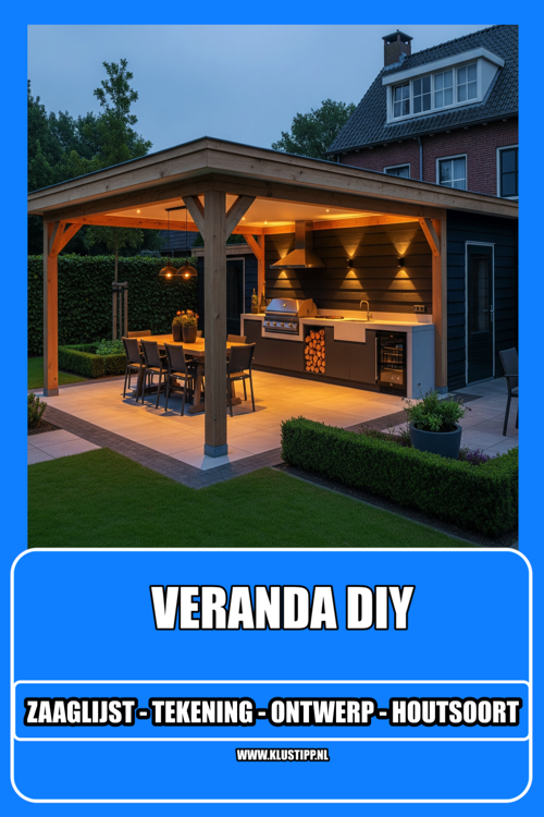 We gaan een simpele, open veranda bouwen van ongeveer 5 meter breed en 3 meter diep. Met een plat dak, stevige palen en een mooie afwerking. Later kun je altijd nog zijwanden of een vloer toevoegen als je dat wilt.